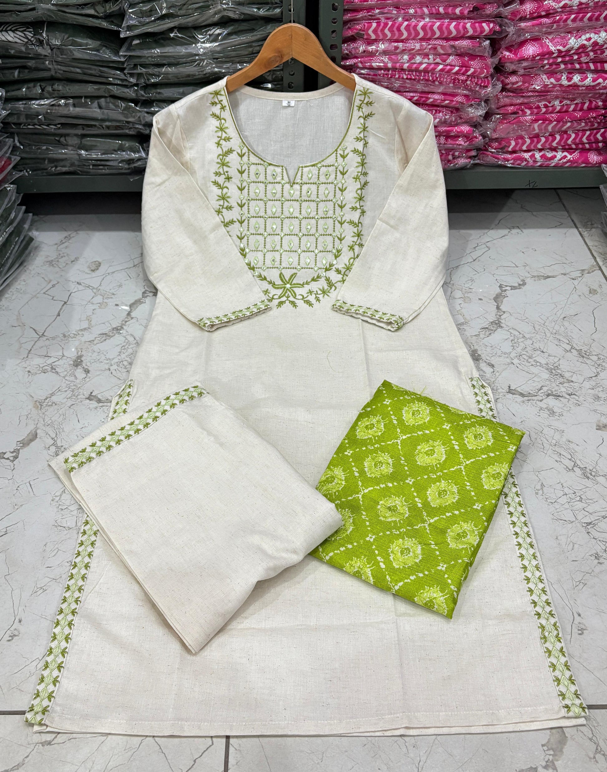 lavena white with green dupatta cotton suit
